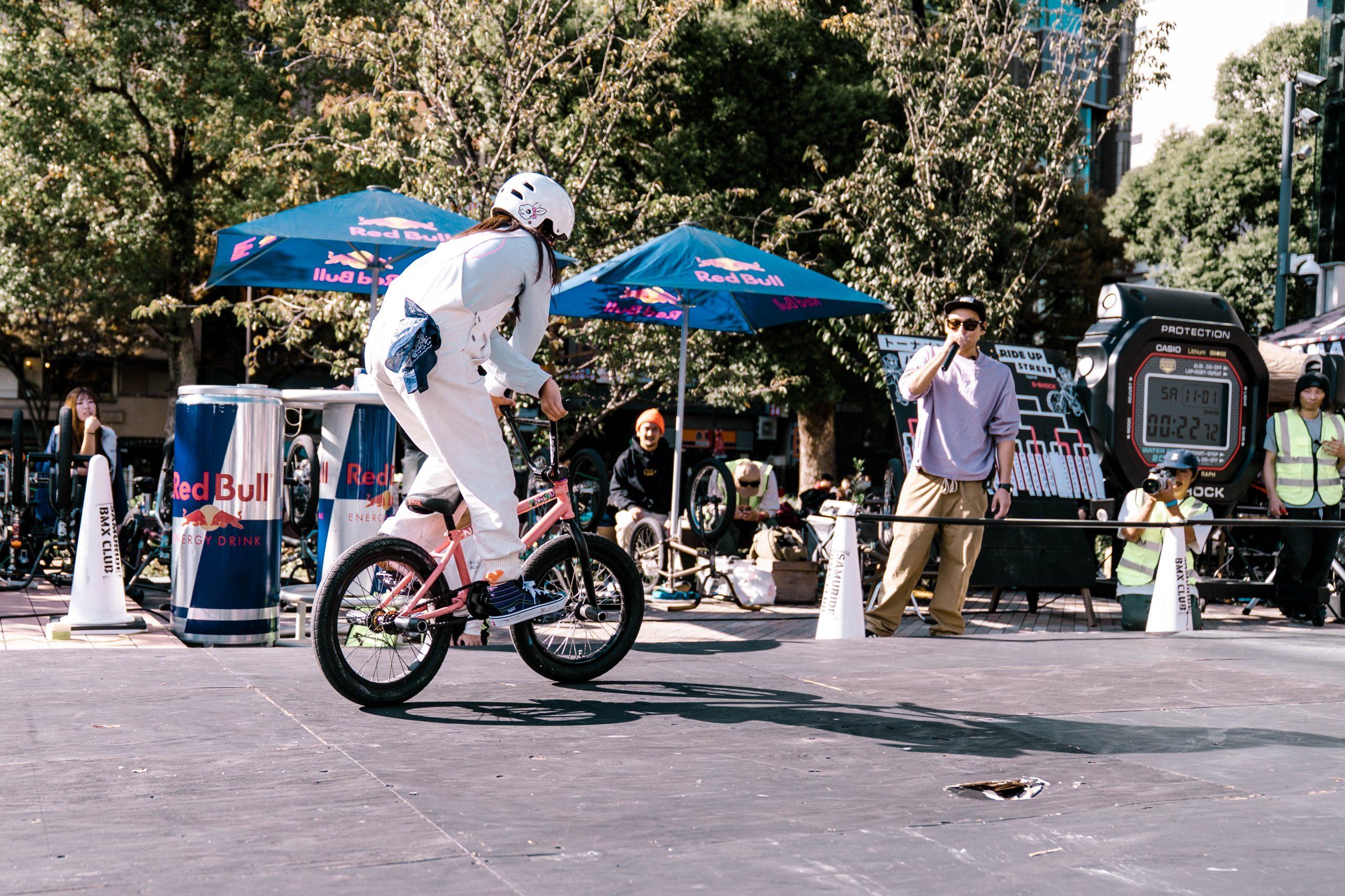そして、オンライン・オフライン問わずBMXスクールやショーなどで活躍するSAMURIDEチームによるショーケースも、本イベントのオーガナイザーのDaichi TeshigaharaのMCもあいまって大盛り上がり。